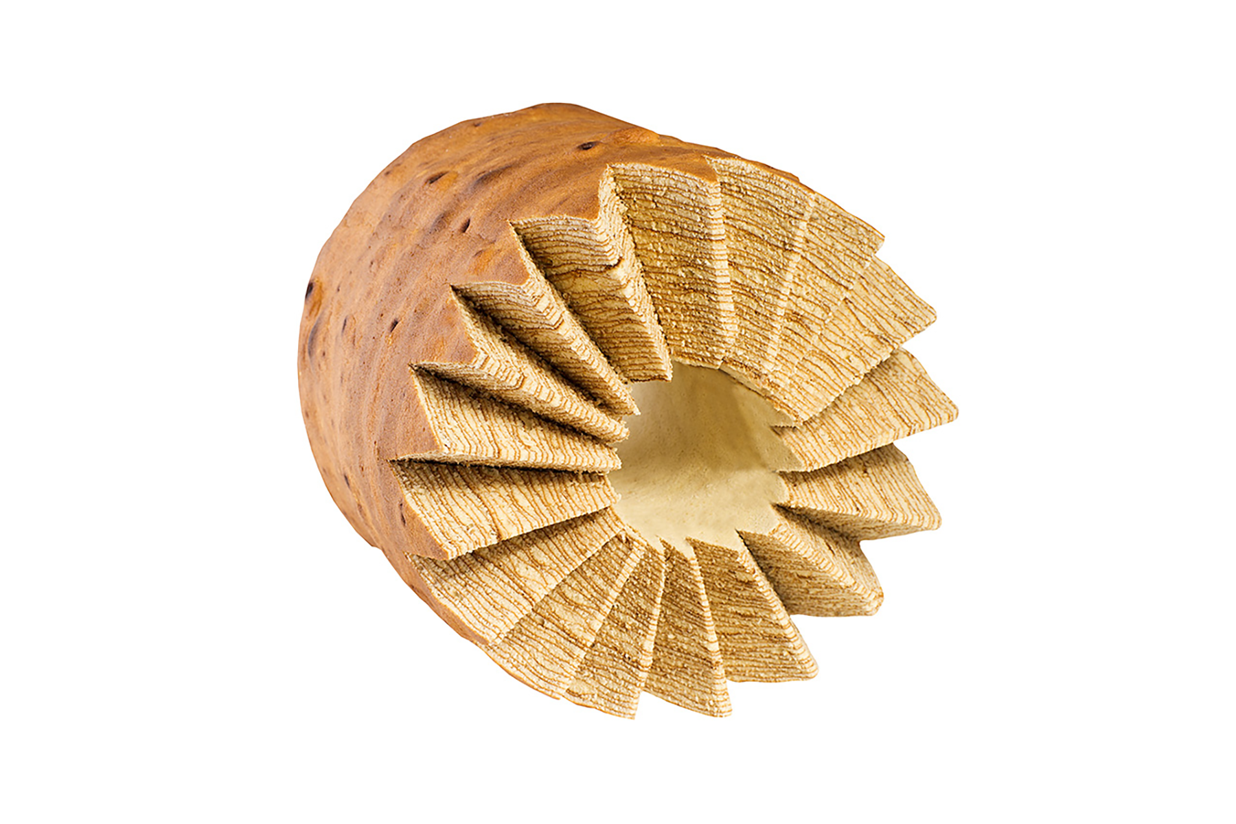 Königlicher Schichtkuchen (Baumkuchen) von SECPOL ist ein Kuchen, der nach unserer eigenen Rezeptur und nach der für Schichtkuchen typischen Backmethode – Schicht für Schicht – hergestellt wird, wodurch ein einzigartiges Muster entsteht, das dem Querschnitt eines Baumstamms ähnelt. Seine ungewöhnliche Form ist das Ergebnis vieler Stunden mühsamer und perfekter Wärmebehandlung durch erfahrene Bäcker.