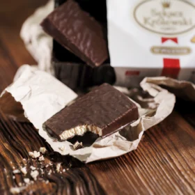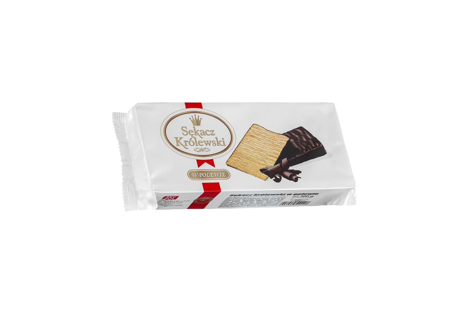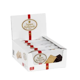Königlicher Schichtkuchen in Glasur 300 g von SECPOL ist Schichtkuchen, der in dünne Stücke geschnitten und mit Kakaoglasur überzogen ist. Das Produkt hat ein Gesamtnettogewicht von 300 g und stellt eine ideale Portion dar, um es bei geselligen oder familiären Treffen zu servieren. Er eignet sich hervorragend als eindrucksvoller Snack für alle Arten von Feiern und Festlichkeiten. In dekorativer Folie verpackt und in einer praktischen Kunststoffschale platziert, ist er nicht nur ein köstliches Dessert, sondern auch ein sofort verschenkfertiges, elegantes süßes Präsent.
