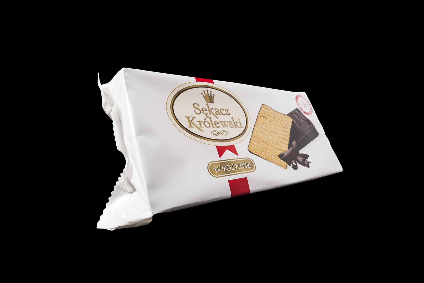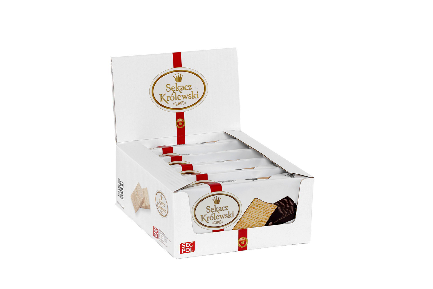 Königlicher Schichtkuchen in Glasur 300 g von SECPOL ist in einer praktischen Kunststoffschale mit drei Fächern platziert und in dekorativer Folie mit farbigem Aufdruck sowie einem Produktfoto verpackt. Die handliche Kunststoffschale ermöglicht ein bequemes Servieren des Schichtkuchens in verschiedenen Situationen und an unterschiedlichen Orten – sogar unterwegs. Die Folienverpackung ist mit speziellen Aufreißkerben zum einfachen Öffnen ausgestattet und besteht aus recyclingfähigen Materialien.