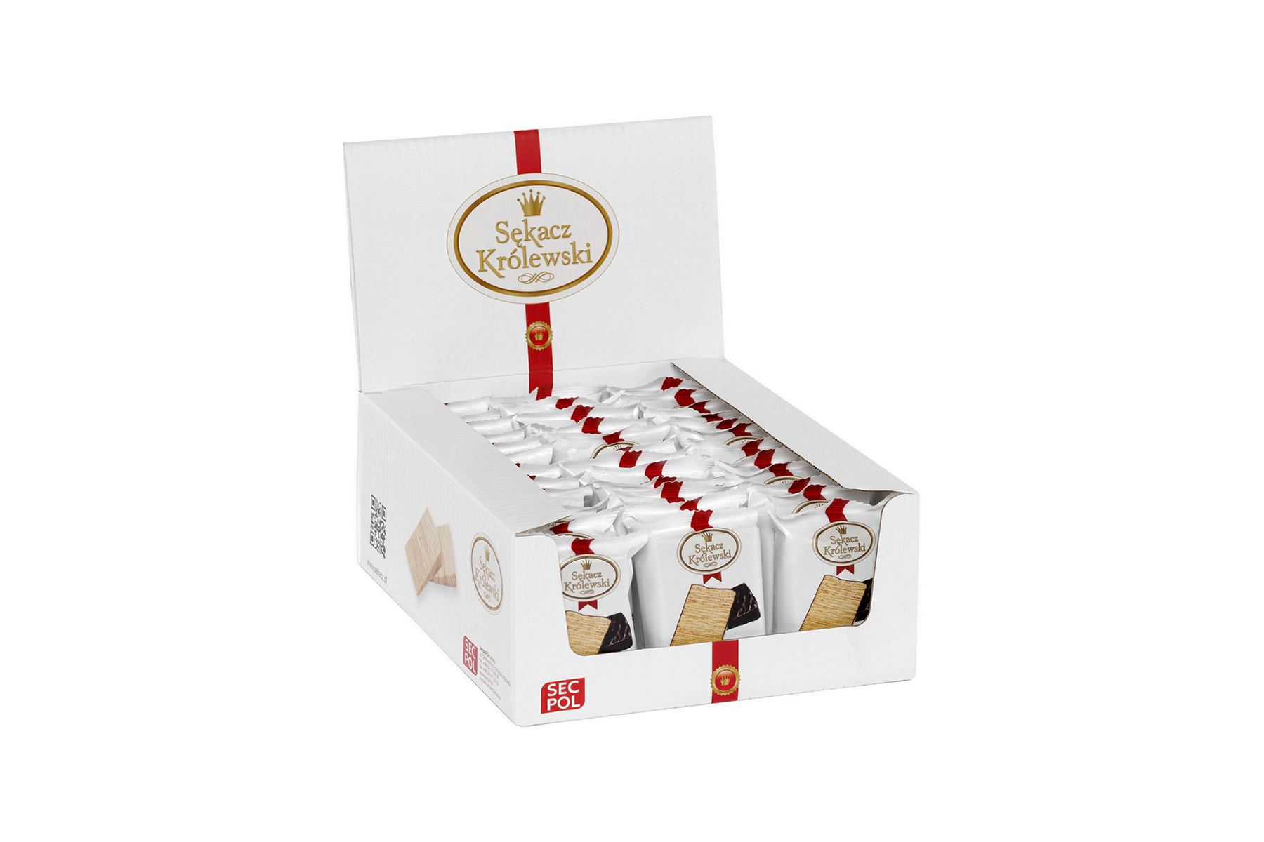 Königlicher Schichtkuchen in Glasur 55 g von SECPOL ist in dekorativer Folie mit farbigem Aufdruck sowie einem Produktfoto verpackt. Handlich und praktisch – ideal als süßer Snack für den Schulrucksack oder für unterwegs. Die Folienverpackung ist mit speziellen Aufreißkerben zum einfachen Öffnen ausgestattet und besteht aus recyclingfähigen Materialien.