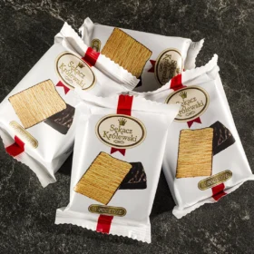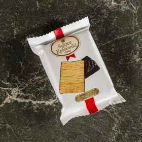 Königlicher Schichtkuchen in Glasur 55 g von SECPOL ist Schichtkuchen, der in 2 dünne Stücke geschnitten und mit Kakaoglasur überzogen ist. Das Produkt hat ein Gesamtnettogewicht von 55 g und stellt eine ideale Portion für einen schnellen Snack dar, der den ersten Hunger stillt und einen passenden Energieschub liefert. Dank der geschnittenen Form lässt sich Königlicher Schichtkuchen leicht mit anderen teilen. Die praktische und handliche Form macht ihn zu einem perfekten Begleiter für unterwegs – bei der Arbeit, auf Reisen oder in der Schule.