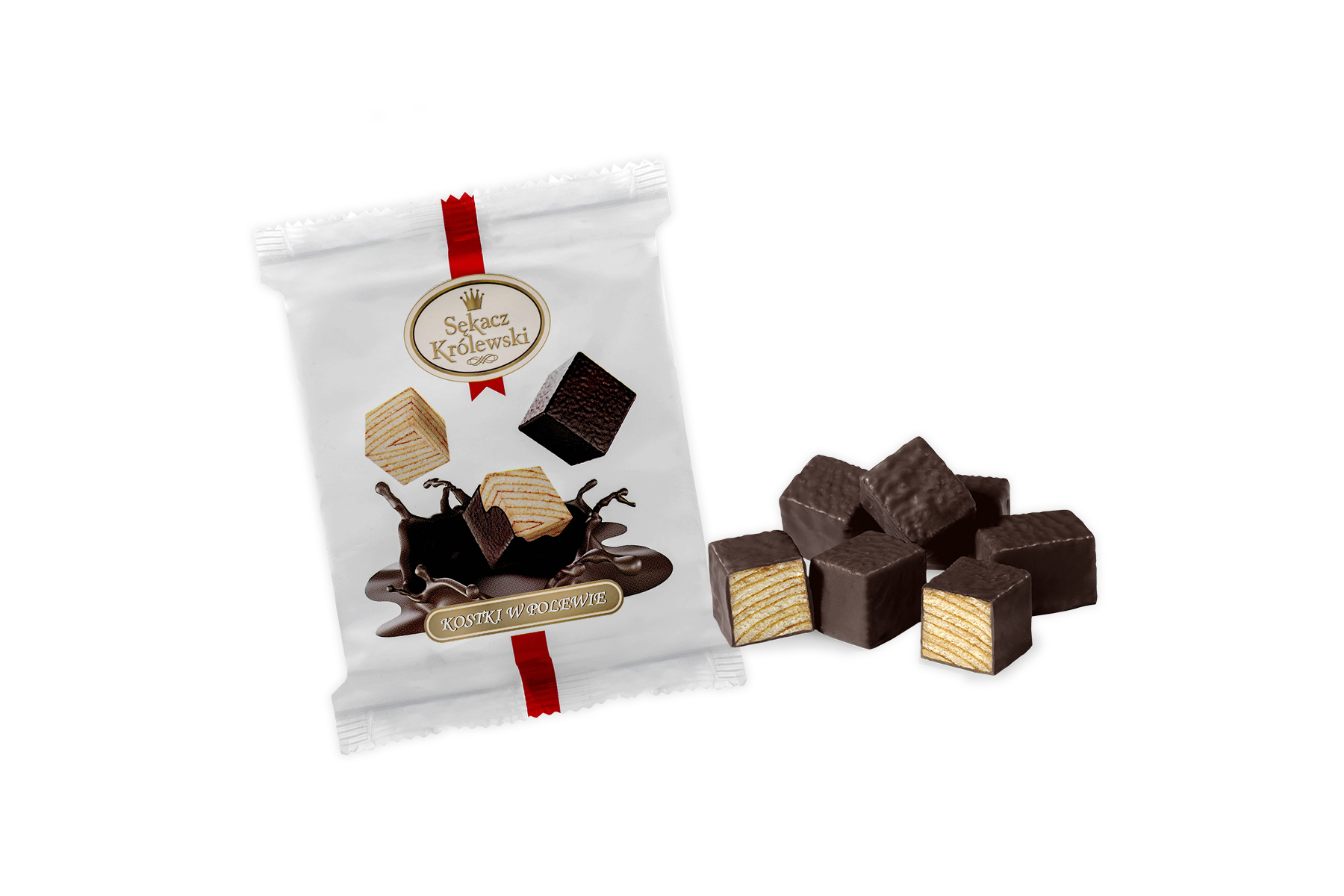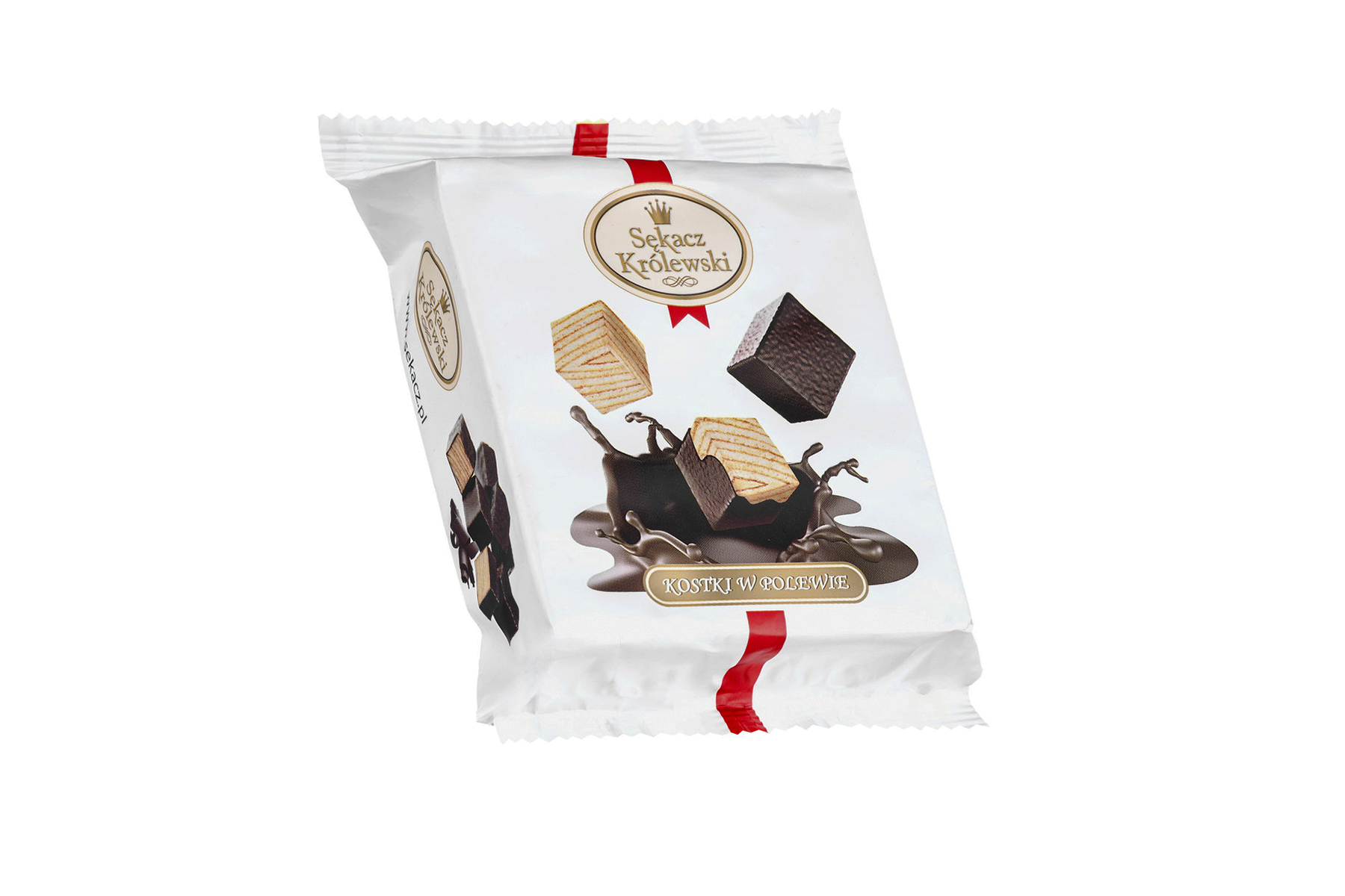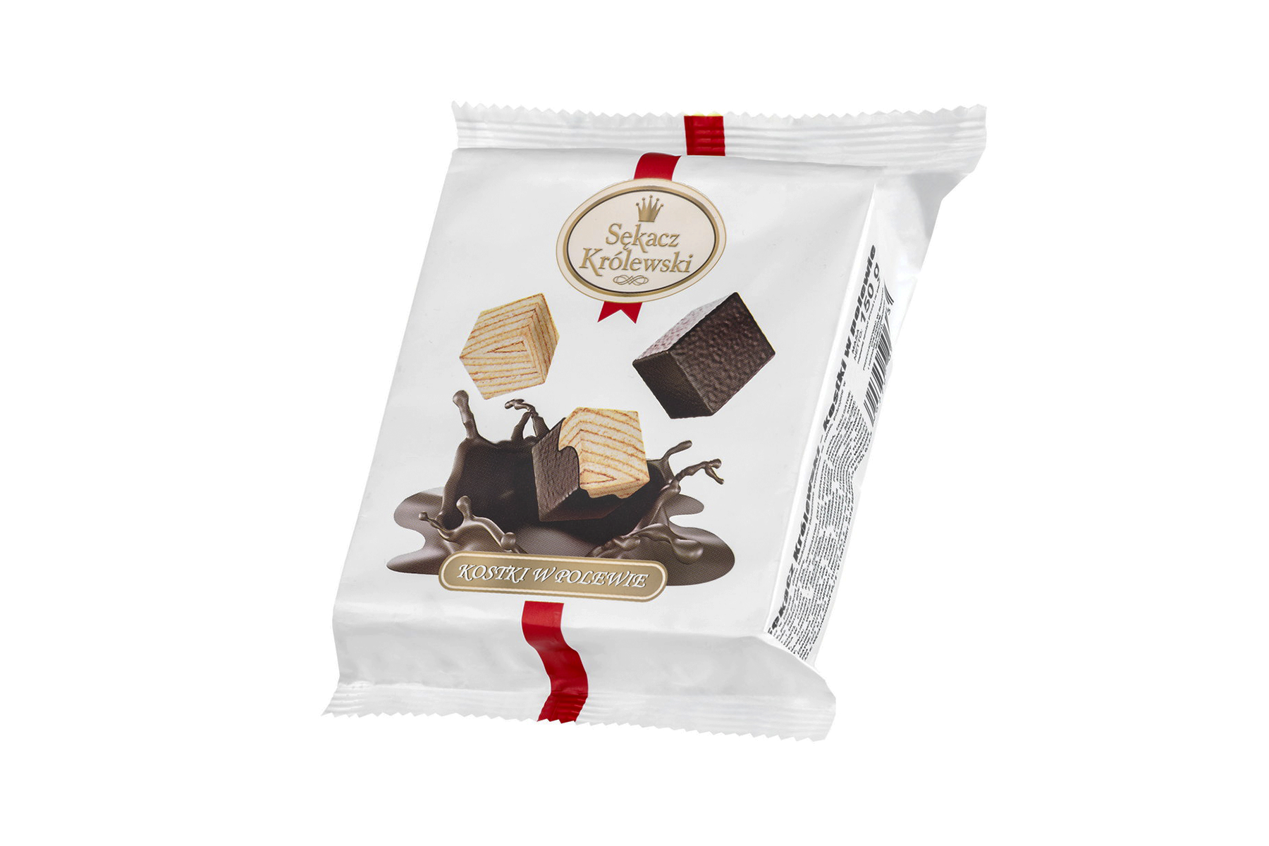 Royal Tree Cake – cubes with glaze 150 g by SECPOL is tree cake cut into small cubes with glaze, with a total net weight of 150 g, making it an optimal portion to serve as a treat during social or family gatherings. It works perfectly as an impressive snack for all kinds of parties and celebrations. Placed in a practical tray and wrapped in decorative foil, it is not only a delicious dessert but also a ready-to-gift, elegant sweet present.