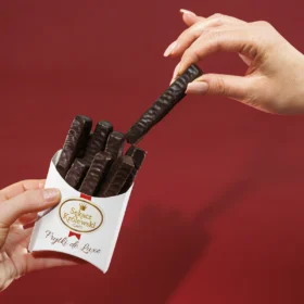 Royal Tree Cake – Fries de Luxe with glaze 90 g by SECPOL is tree cake cut into thin strips in the shape of French fries, with glaze, with a total net weight of 90 g, making it an optimal portion for a quick snack that satisfies initial hunger and provides an energy boost. Thanks to being pre-cut, Royal Tree Cake can be easily shared with others. The unique form of this tree cake is legally protected – its production is exclusively reserved for SECPOL, which holds registered industrial designs.