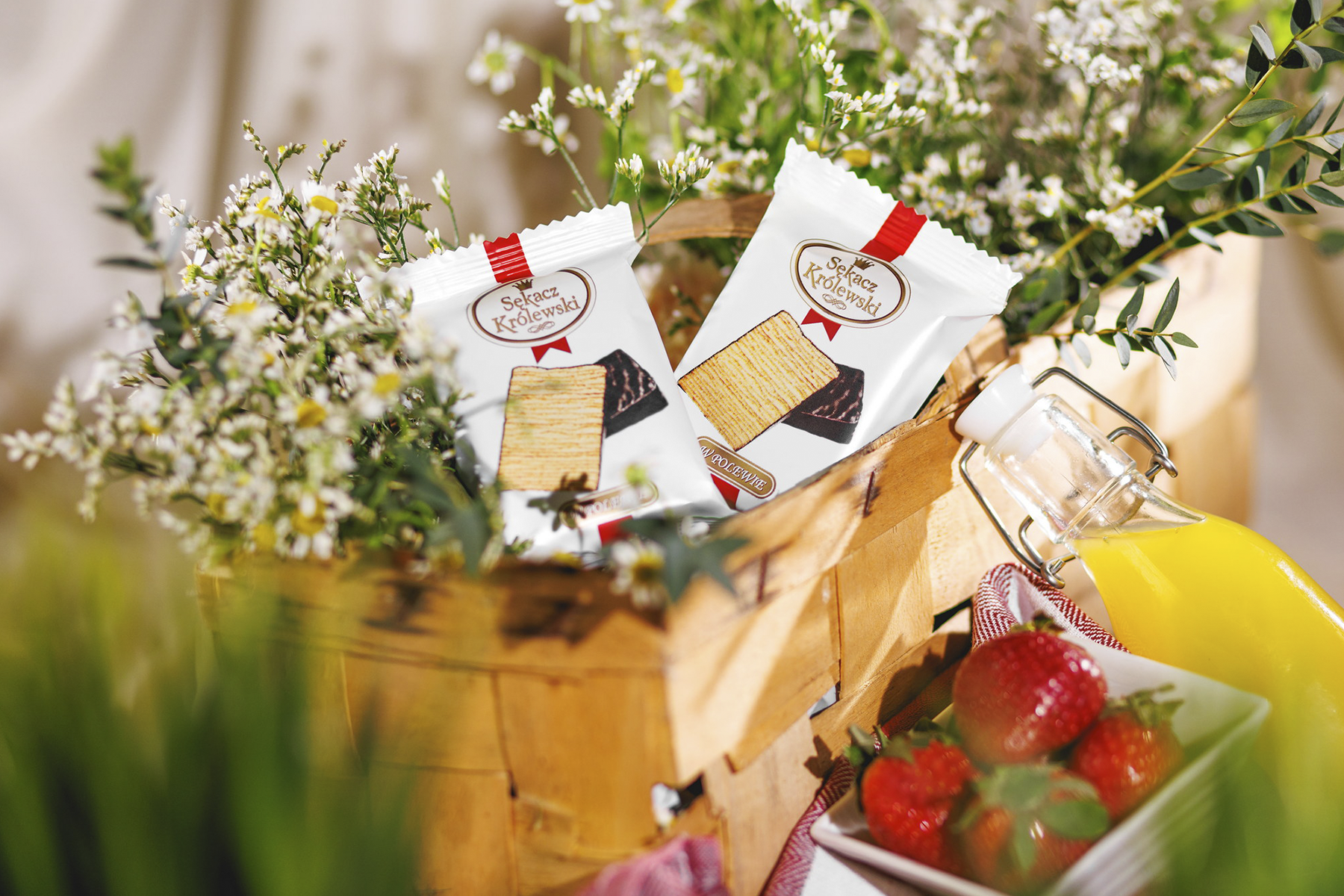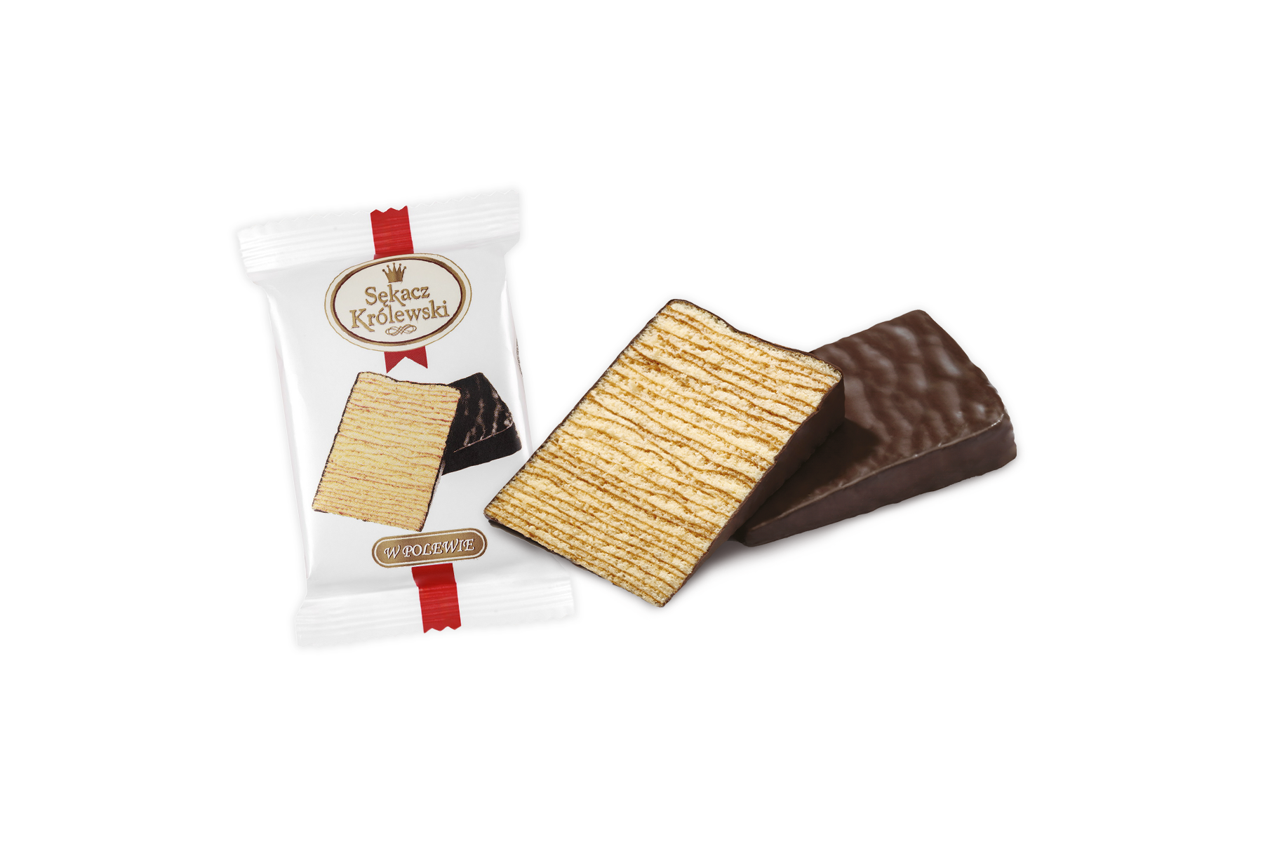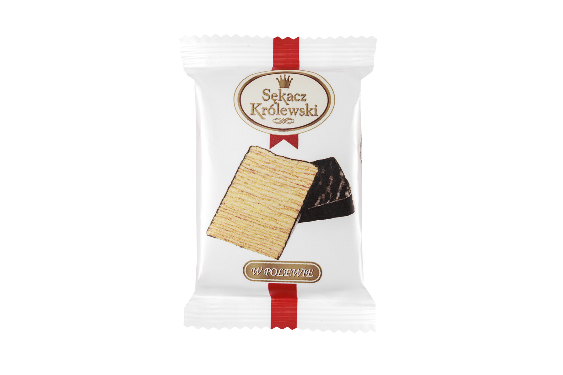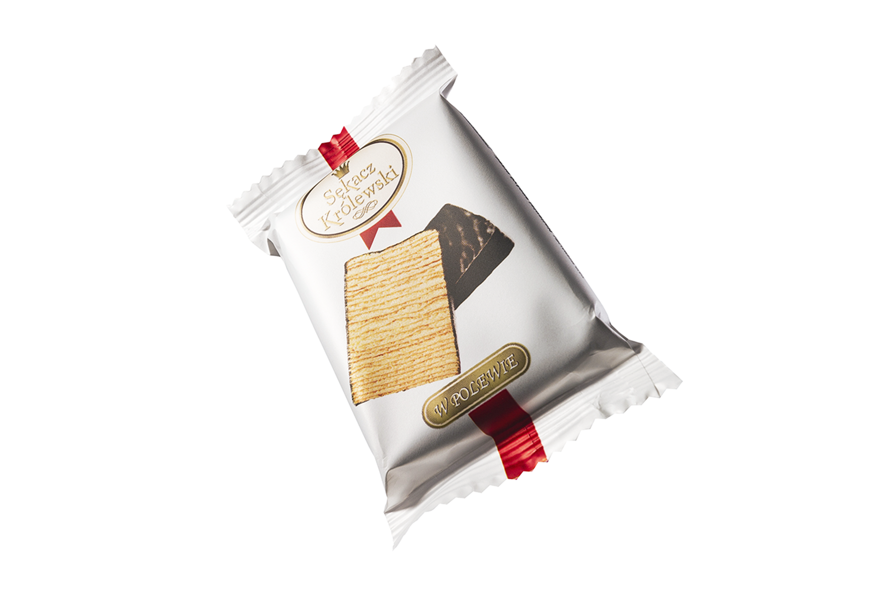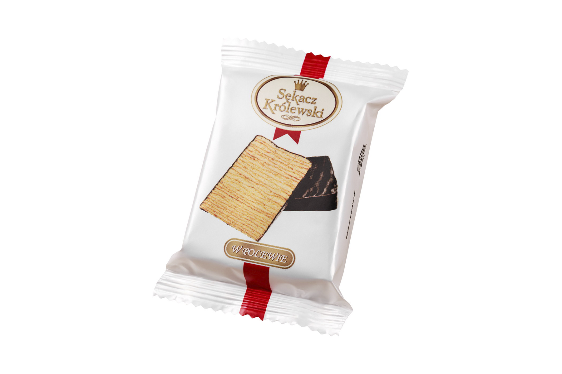 Royal Tree Cake with glaze 55 g by SECPOL is tree cake cut into 2 thin pieces with glaze, with a total net weight of 55 g, making it an optimal portion for a quick snack that satisfies initial hunger and provides an energy boost. Thanks to being pre-cut, Royal Tree Cake can be easily shared with others. Its practical and convenient form means you can always have it with you – at work, while travelling, at school – wherever you need it.